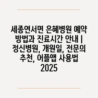 세종연서면 은혜병원 예약 방법과 진료시간 공지 | 정신병원, 개원일, 전연락 추천, 어플앱 사용법 2025 에 대해 자주 묻는 질문 TOP 5
