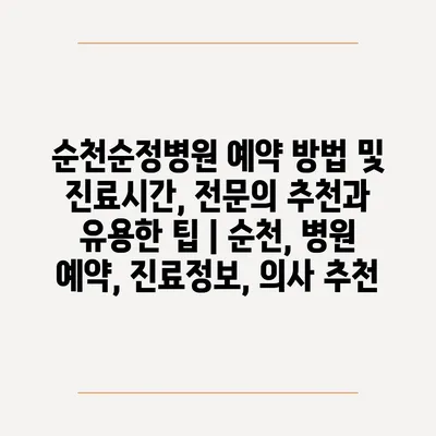 ✅ 순천순정병원 예약 방법과 진료 시간을 상세히 알아보세요.