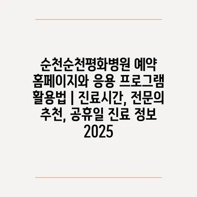 순천순천평화병원 예약 홈페이지와 응용 프로그램 활용법 | 진료시간, 전연락 추천, 공휴일 진료 정보 2025에 대해 공지제공합니다.