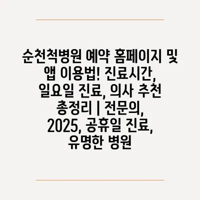 순천척병원 예약 홈페이지 및 앱 이용법! 진료시간, 일요일 진료, 의사 추천 총정리 | 전연락, 2025, 공휴일 진료, 유명한 병원 에 대해 자주 묻는 질문 TOP 5