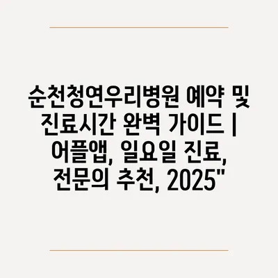 순천청연우리병원 예약 및 진료시간 완벽 설명서 | 어플앱, 일요일 진료, 전연락 추천, 2025