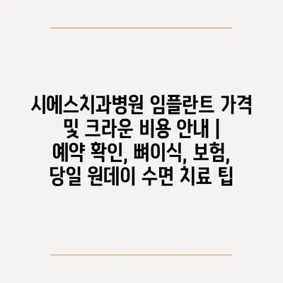 시에스치과병원 임플란트 가격 및 크라운 비용 공지 | 예약 확인, 뼈이식, 보험, 당일 원데이 수면 치료 팁 에 대해 자주 묻는 질문 TOP 5