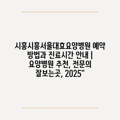 시흥시흥서울대효요양병원 예약 방법과 진료시간 공지 | 요양병원 추천, 전연락 잘보는곳, 2025″ 에 대해 자주 묻는 질문 TOP 5