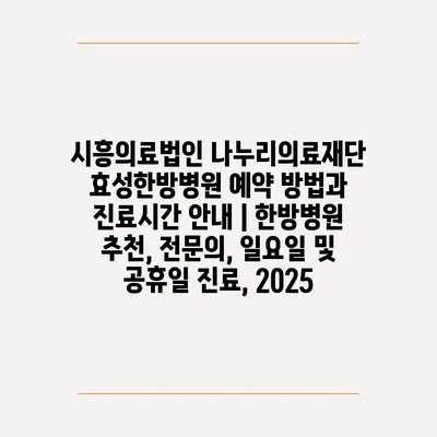 시흥의료법인 나누리의료재단 효성한방병원 예약 방법과 진료시간 안내 | 한방병원 추천, 전문의, 일요일 및 공휴일 진료, 2025