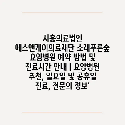 시흥의료법인 에스앤케이의료재단 소래푸른숲 요양병원 예약 방법 및 진료시간 공지 | 요양병원 추천, 일요일 및 공휴일 진료, 전연락 정보’ 에 대해 자주 묻는 질문 TOP 5