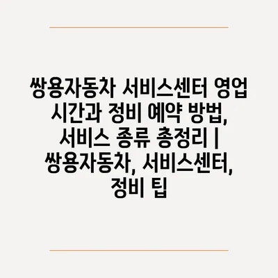 ✅ 쌍용자동차 서비스센터의 영업시간과 예약 방법을 알아보세요.
