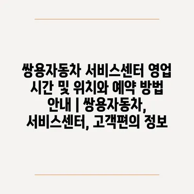 쌍용자동차 서비스센터 영업 시간 및 위치와 예약 방법 안내 | 쌍용자동차, 서비스센터, 고객편의 정보
