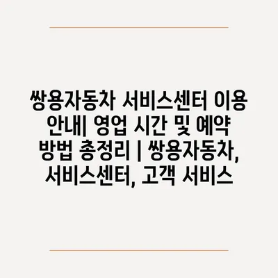 쌍용자동차 서비스센터 이용 공지| 영업 시간 및 예약 방법 총정리 | 쌍용자동차, 서비스센터, 고객 서비스 에 대해 자주 묻는 질문 TOP 5