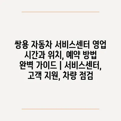 쌍용 자동차 서비스센터 영업 시간과 위치, 예약 방법 완벽 설명서 | 서비스센터, 고객 지원, 차량 점검 에 대해 자주 묻는 질문 TOP 5