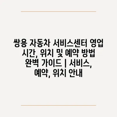 ✅ 쌍용 자동차 서비스센터의 자세한 운영 시간과 위치를 알아보세요.