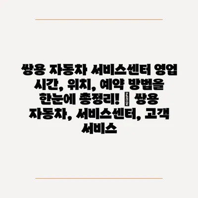 쌍용 자동차 서비스센터 영업 시간, 위치, 예약 방법을 한눈에 총정리! | 쌍용 자동차, 서비스센터, 고객 서비스 에 대해 자주 묻는 질문 TOP 5