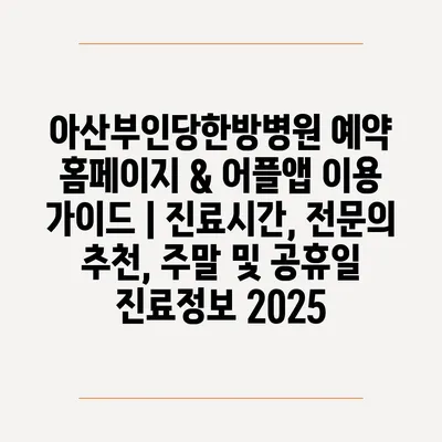 ✅ 아산부인당한방병원 예약 방법을 자세히 알아보세요.