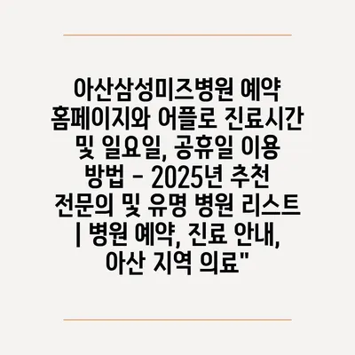 아산삼성미즈병원 예약 홈페이지와 어플로 진료시간 및 일요일, 공휴일 이용 방법 – 2025년 추천 전연락 및 유명 병원 리스트 | 병원 예약, 진료 공지, 아산 지역 의료에 대해 자주 묻는 질문 TOP 5