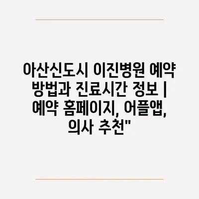 ✅ 아산신도시 이진병원의 예약 방법을 지금 바로 알아보세요!