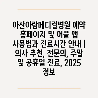 아산아람메디컬병원 예약 홈페이지 및 어플 앱 사용법과 진료시간 공지 | 의사 추천, 전연락, 주말 및 공휴일 진료, 2025 정보에 대해 소개합니다.