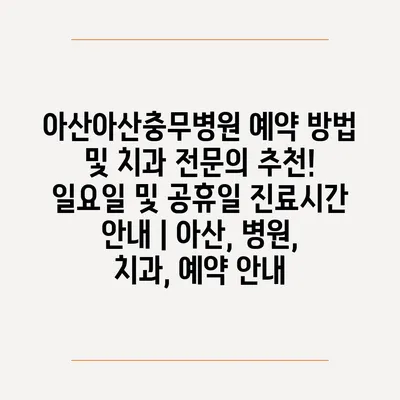 아산아산충무병원 예약 방법 및 치과 전연락 추천! 일요일 및 공휴일 진료시간 공지 | 아산, 병원, 치과, 예약 공지 에 대해 자주 묻는 질문 TOP 5