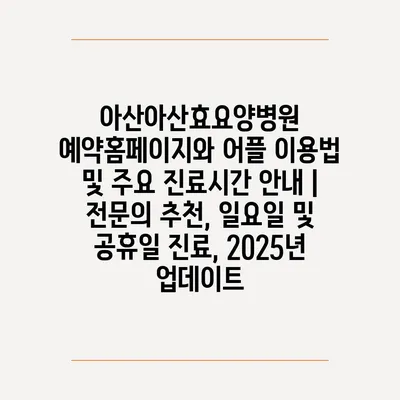 아산아산효요양병원 예약홈페이지와 어플 이용법 및 주요 진료시간 안내 | 전문의 추천, 일요일 및 공휴일 진료, 2025년 업데이트