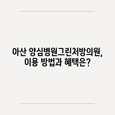 아산 양심병원그린처방의원, 이용 방법과 혜택은?