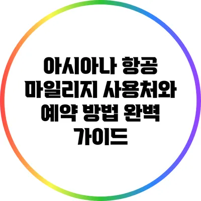 ✅ 아시아나 항공 마일리지 사용처를 지금 바로 알아보세요!
