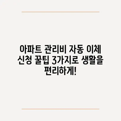 아파트 관리비 자동 이체 신청하는 3가지 필수 꿀팁을 통해 효율적으로 관리비를 납부하고 편리한 생활을 누리는 방법을 알아보세요.
