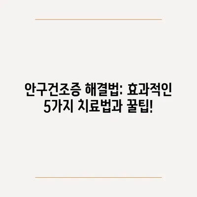안구건조증 해결 방법을 알아보세요. 유효한 5가지 치료법과 꿀팁을 통해 안구 건조함을 효과적으로 관리하세요!