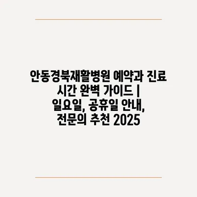 안동경북재활병원 예약과 진료 시간 완벽 설명서 | 일요일, 공휴일 공지, 전연락 추천 2025에 대해 알아보겠습니다.