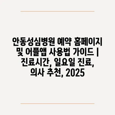안동성심병원 예약 홈페이지 및 어플앱 사용법 설명서 | 진료시간, 일요일 진료, 의사 추천, 2025 에 대해 자주 묻는 질문 TOP 5
