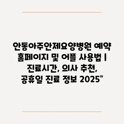 안동아주안제요양병원 예약 홈페이지 및 어플 사용법 | 진료시간, 의사 추천, 공휴일 진료 정보 2025″ 에 대해 자주 묻는 질문 TOP 5
