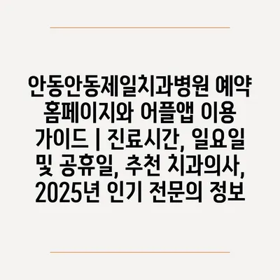 안동안동제일치과병원 예약 홈페이지와 어플앱 이용 설명서 | 진료시간, 일요일 및 공휴일, 추천 치과의사, 2025년 인기 전연락 정보 에 대해 자주 묻는 질문 TOP 5