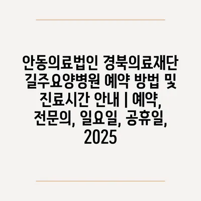안동의료법인 경북의료재단 길주요양병원 예약 방법 및 진료시간 공지 | 예약, 전연락, 일요일, 공휴일, 2025 에 대해 자주 묻는 질문 TOP 5