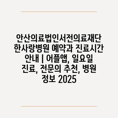 안산의료법인서전의료재단 한사랑병원 예약과 진료시간 공지 | 어플앱, 일요일 진료, 전연락 추천, 병원 정보 2025 에 대해 자주 묻는 질문 TOP 5