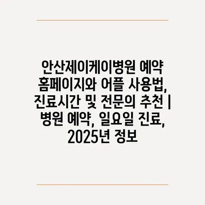 안산제이케이병원 예약 홈페이지와 어플 사용법, 진료시간 및 전연락 추천 | 병원 예약, 일요일 진료, 2025년 정보 에 대해 자주 묻는 질문 TOP 5