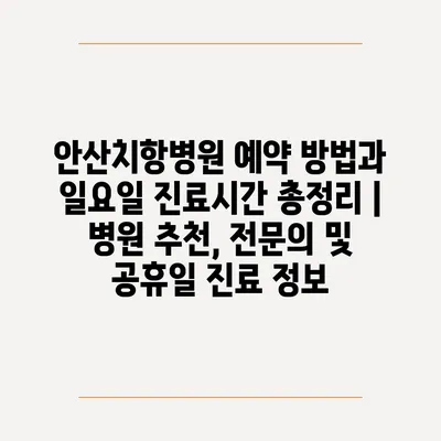 안산치항병원 예약 방법과 일요일 진료시간 총정리 | 병원 추천, 전연락 및 공휴일 진료 정보 에 대해 자주 묻는 질문 TOP 5