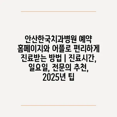 안산한국치과병원 예약 홈페이지와 어플로 편리하게 진료받는 방법 | 진료시간, 일요일, 전연락 추천, 2025년 팁 에 대해 자주 묻는 질문 TOP 5
