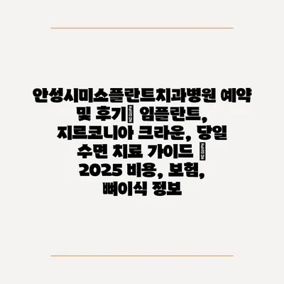 안성시미소플란트치과병원 예약 및 후기| 임플란트, 지르코니아 크라운, 당일 수면 치료 설명서 | 2025 비용, 보험, 뼈이식 정보