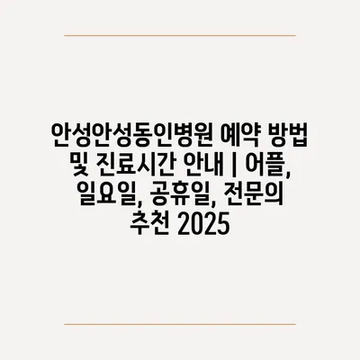 ✅ 안성안성동인병원 예약 방법을 자세히 알아보세요!