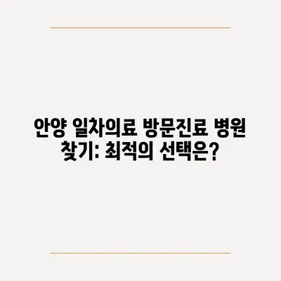 안양 일차의료 방문진료 병원 찾기: 최적의 선택은?