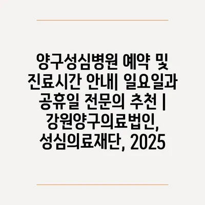양구성심병원 예약 및 진료시간 공지| 일요일과 공휴일 전연락 추천 | 강원양구의료법인, 성심의료재단, 2025 에 대해 자주 묻는 질문 TOP 5