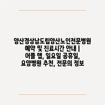 ✅ 양산노인전문병원에서의 진료시간과 예약 방법을 지금 바로 알아보세요.