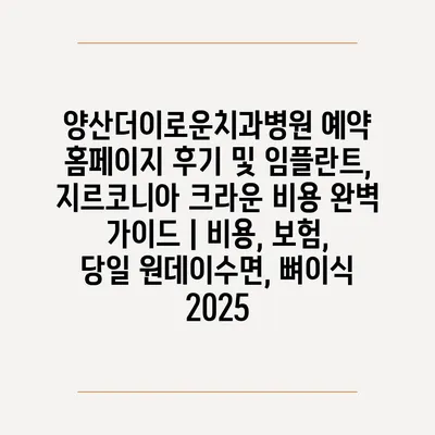 양산더이로운치과병원 예약 홈페이지 후기 및 임플란트, 지르코니아 크라운 비용 완벽 설명서 | 비용, 보험, 당일 원데이수면, 뼈이식 2025 에 대해 자주 묻는 질문 TOP 5
