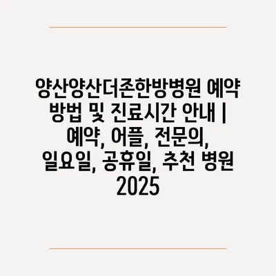 양산양산더존한방병원 예약 방법 및 진료시간 안내 | 예약, 어플, 전문의, 일요일, 공휴일, 추천 병원 2025