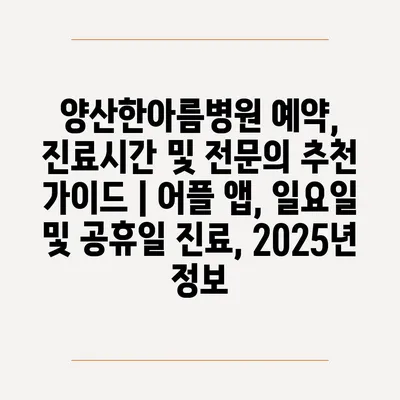 ✅ 양산한아름병원 예약 방법을 자세히 알아보세요.