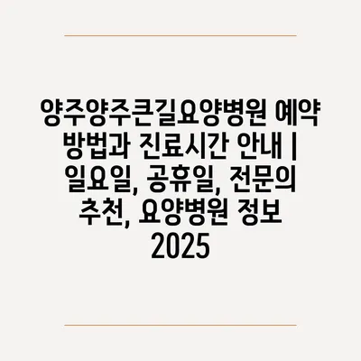 양주양주큰길요양병원 예약 방법과 진료시간 안내 | 일요일, 공휴일, 전문의 추천, 요양병원 정보 2025