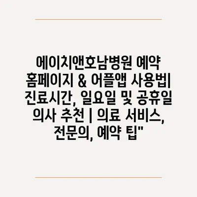 에이치앤호남병원 예약 홈페이지 & 어플앱 사용법| 진료시간, 일요일 및 공휴일 의사 추천 | 의료 서비스, 전연락, 예약 팁에 대해 자주 묻는 질문 TOP 5