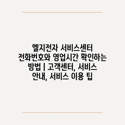 ✅ 엘지전자 서비스센터의 전화번호와 영업시간을 쉽게 알아보세요.