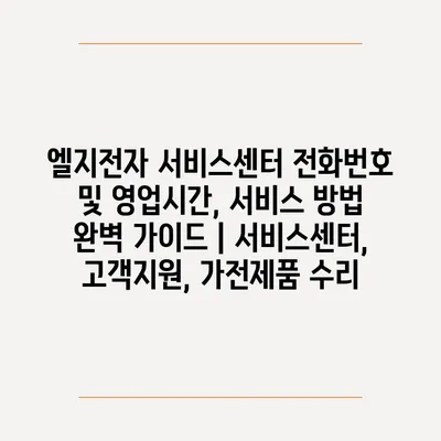 엘지전자 서비스센터 전화번호 및 영업시간, 서비스 방법 완벽 설명서 | 서비스센터, 고객지원, 가전제품 수리 에 대해 자주 묻는 질문 TOP 5