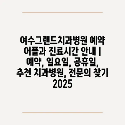여수그랜드치과병원 예약 어플과 진료시간 공지 | 예약, 일요일, 공휴일, 추천 치과병원, 전연락 찾기 2025에 대해 알아보겠습니다.