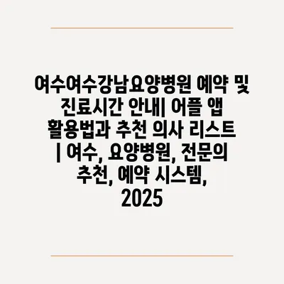 여수여수강남요양병원 예약 및 진료시간 공지| 어플 앱 활용법과 추천 의사 리스트 | 여수, 요양병원, 전연락 추천, 예약 시스템, 2025 에 대해 자주 묻는 질문 TOP 5