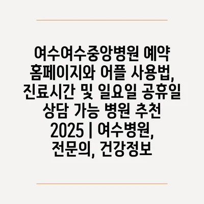 여수여수중앙병원 예약 홈페이지와 어플 사용법, 진료시간 및 일요일 공휴일 상담 가능 병원 추천 2025 | 여수병원, 전문의, 건강정보
