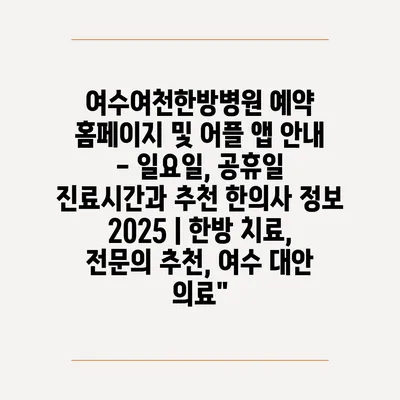 여수여천한방병원 예약 홈페이지 및 어플 앱 공지 – 일요일, 공휴일 진료시간과 추천 한의사 정보 2025 | 한방 치료, 전연락 추천, 여수 대안 의료” 에 대해 자주 묻는 질문 TOP 5